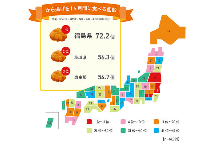 から揚げが「好きなおかずランキング」1位を達成!年間総消費量は380億個超(推計値)!多岐に渡るから揚げを食べている「福島県」が県別ランキングで初の1位に!