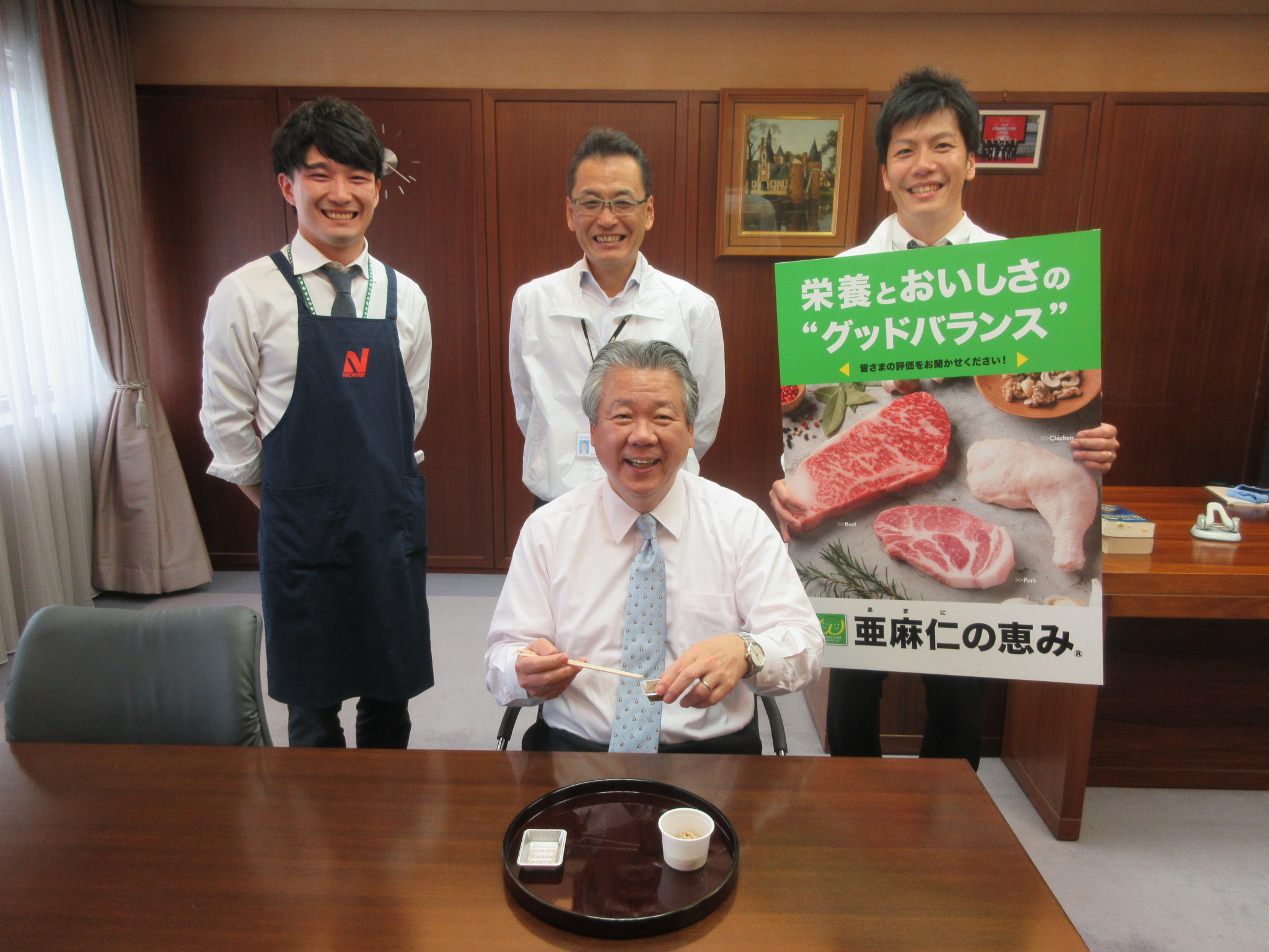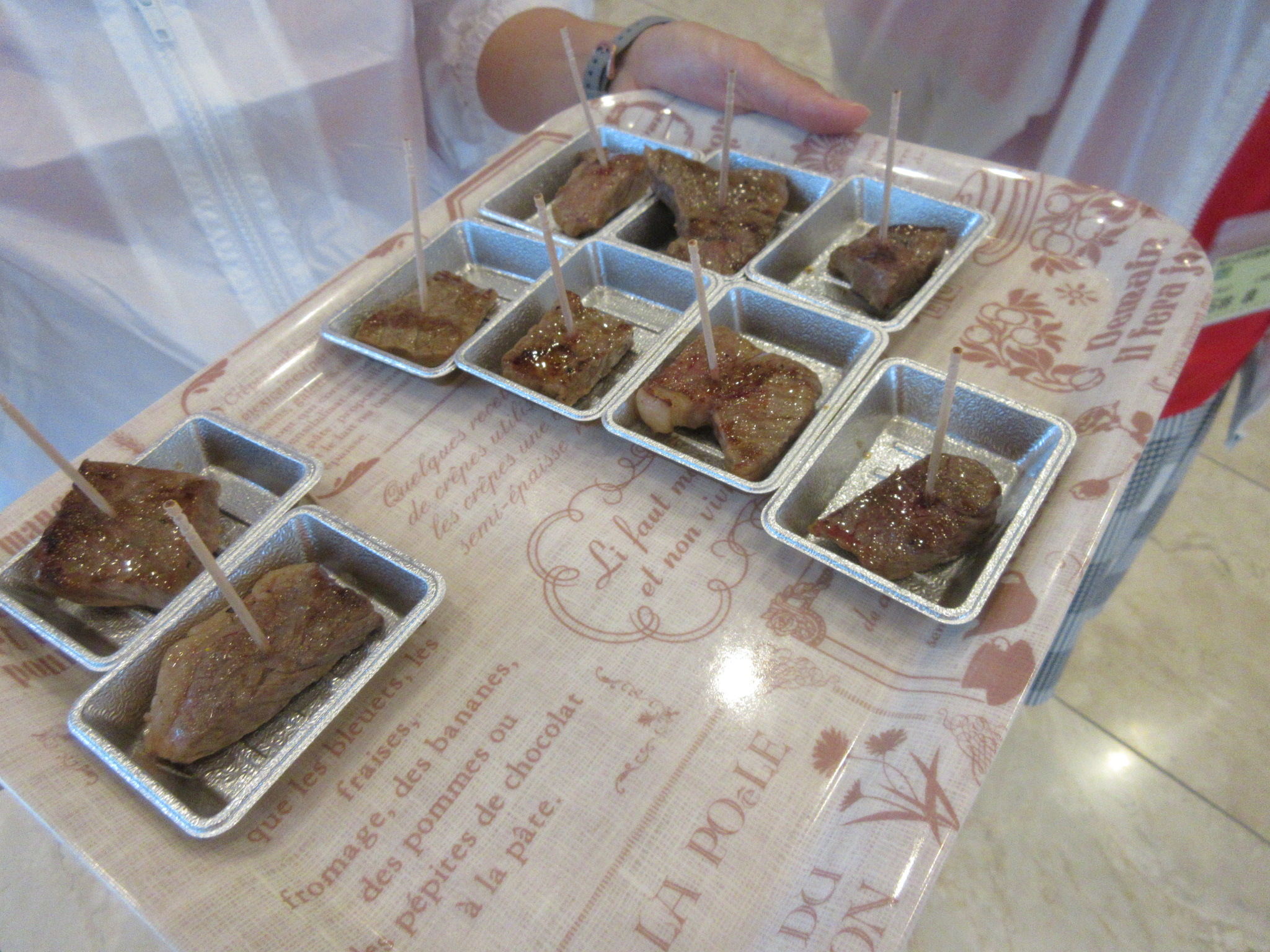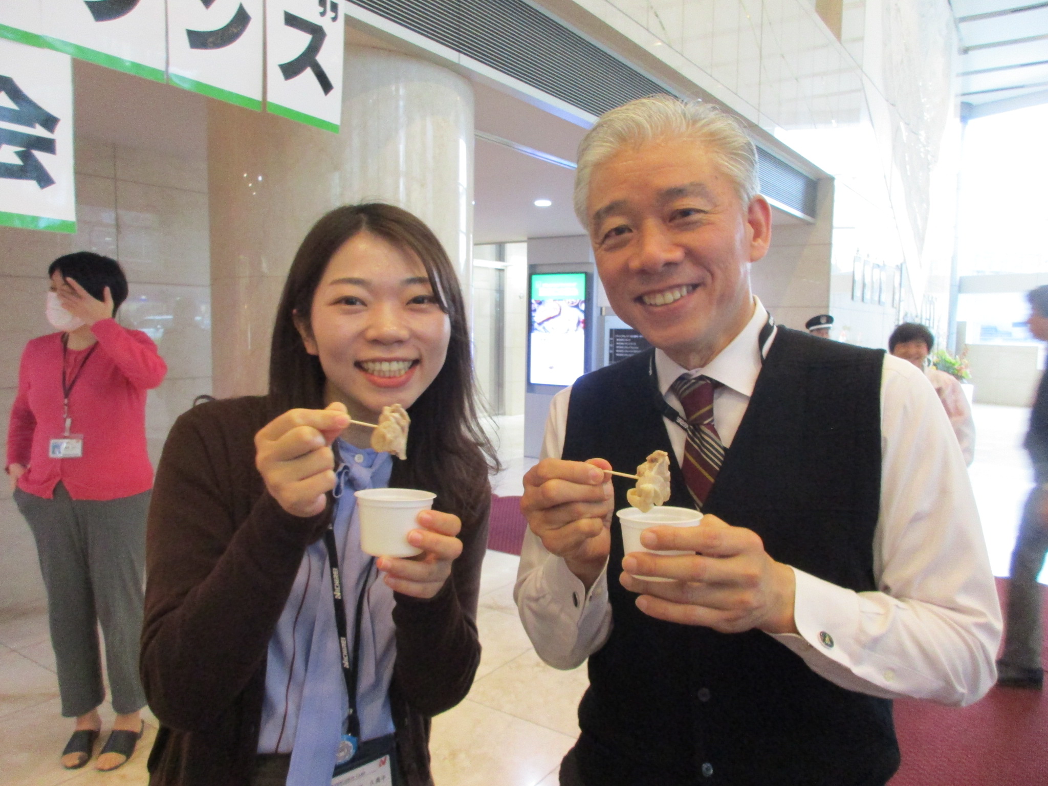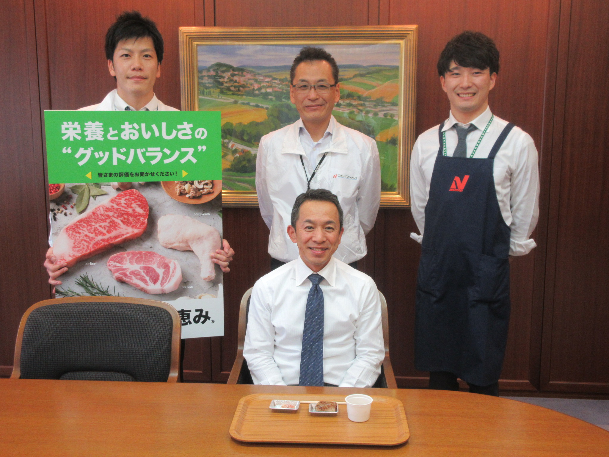 ニチレイフレッシュの商品『亜麻仁の恵み®』の試食会を、ニチレイ本社ビル1階ロビーで開催しました。亜麻仁の牛・豚・鶏の3種類を、従業員だけでなく、本社ビルで働いている他企業のみなさんや来訪された方々にもご試食頂きました。予想を超える方々に来ていただき、大盛況な試食会になりました。