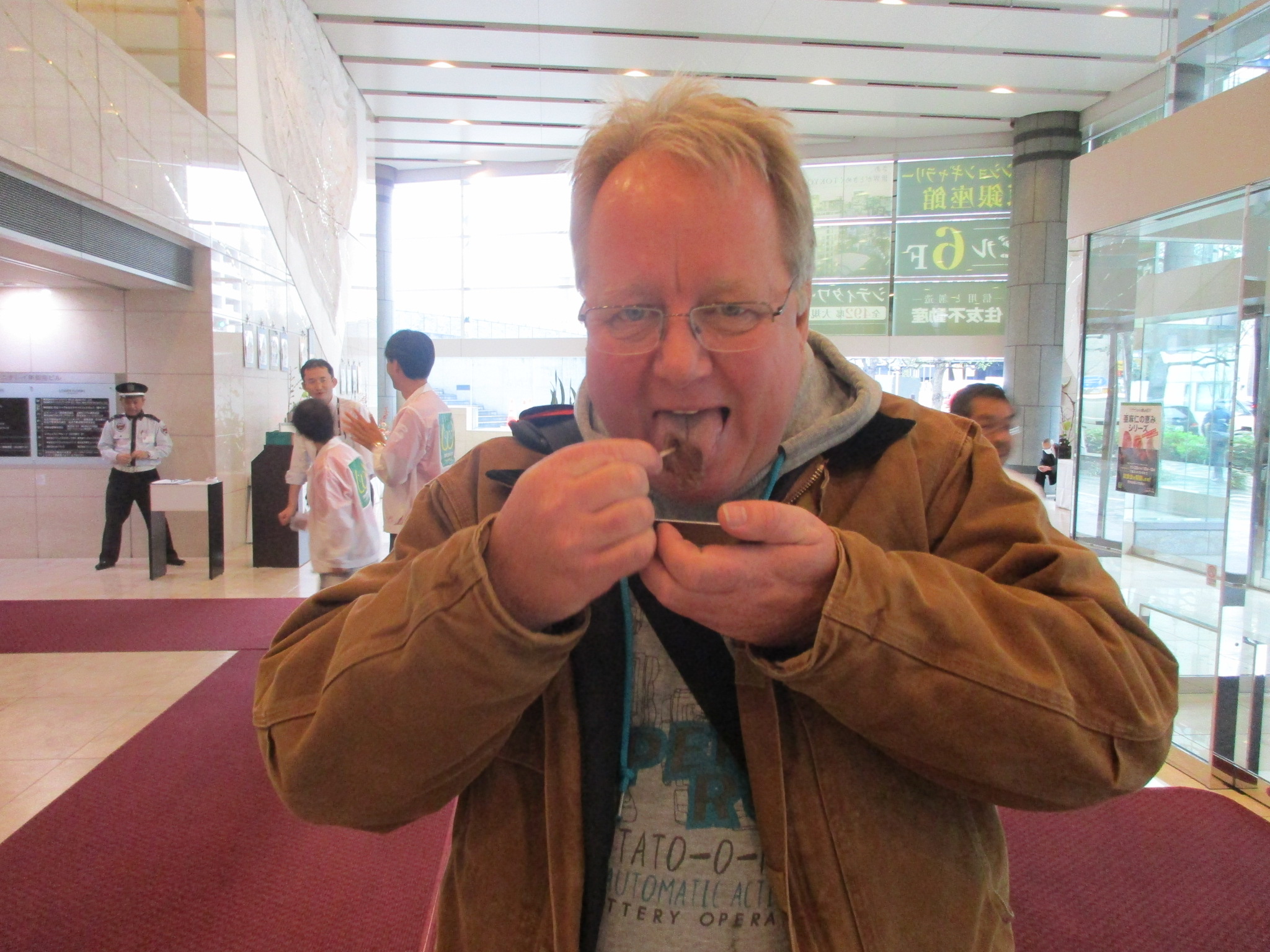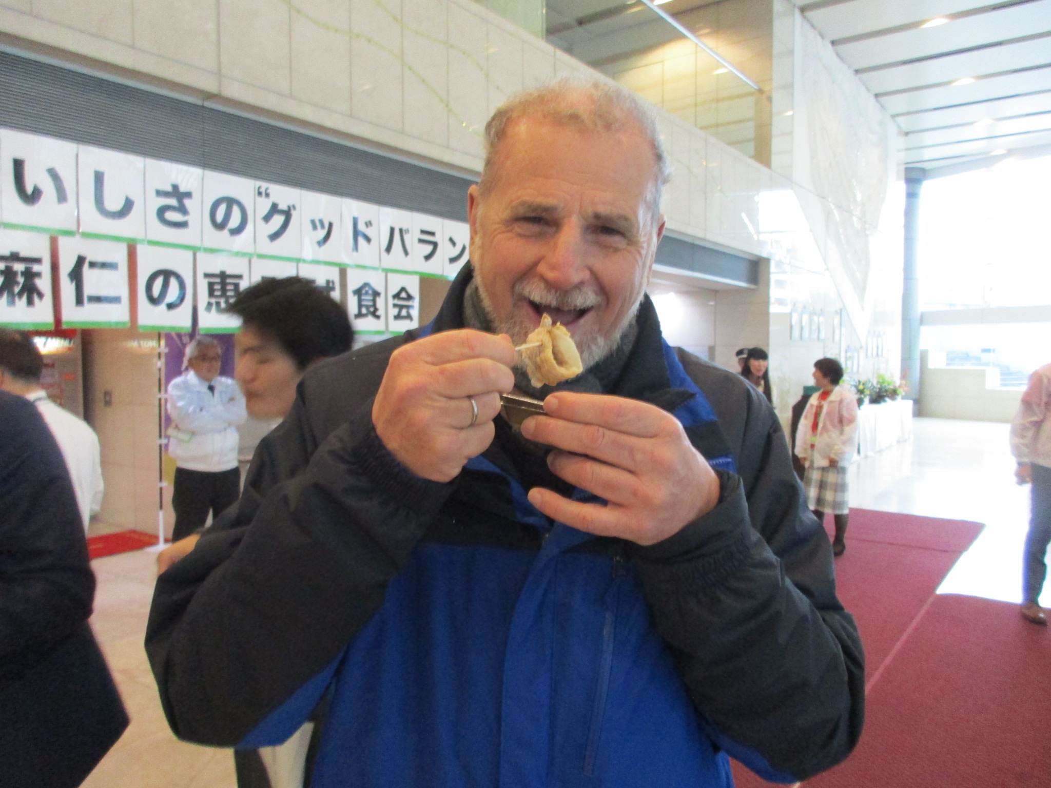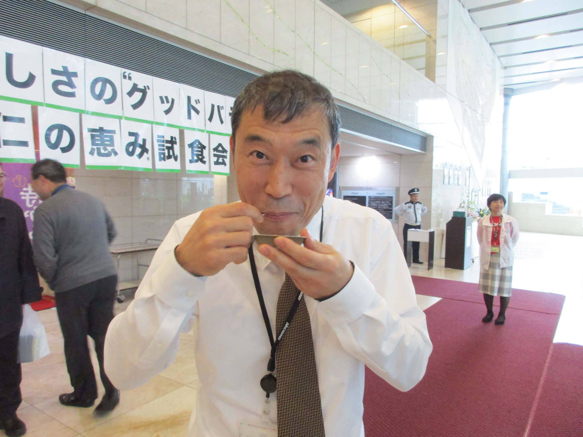 みなさんの笑顔の写真です。おいしいものを食べる時は、本当にみなさん笑顔ですね。