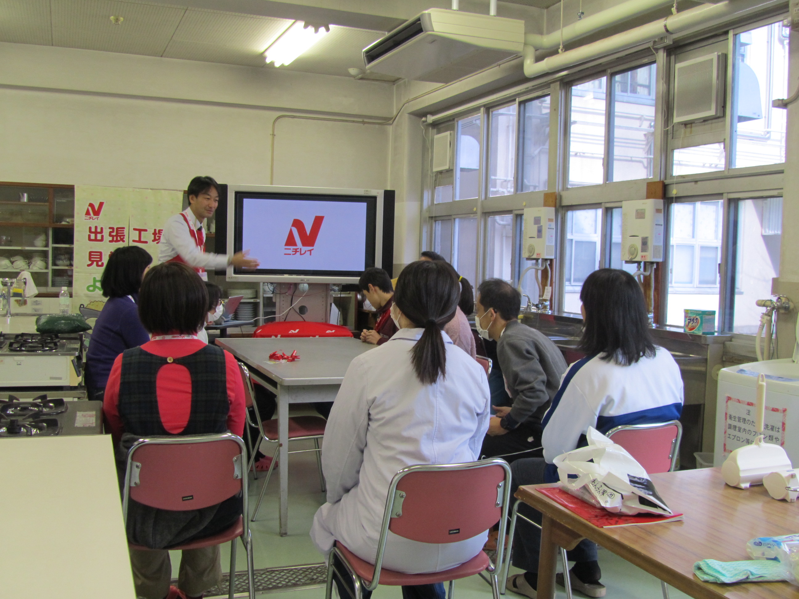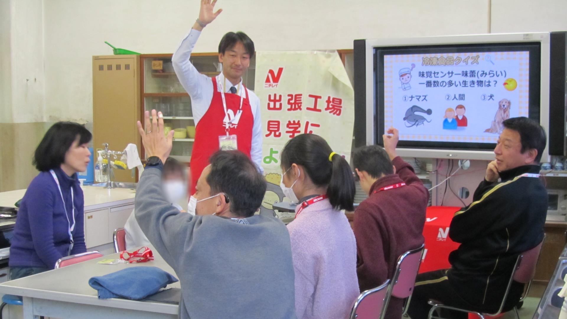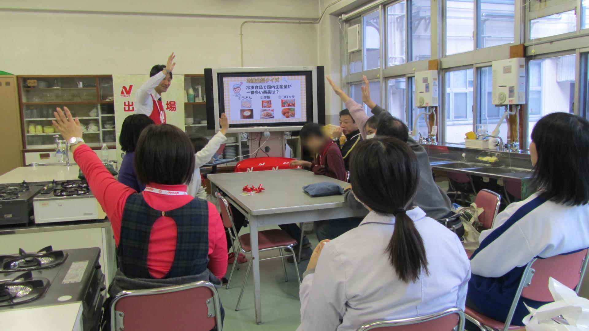 今回ご縁があり、大阪北視覚支援学校で出前授業を実施しました。こども達に楽しんでもらえるよう、冷凍食品クイズ以外に、点字を使った「五味識別テスト体験」や、視覚以外の感覚を使った「冷凍食品当てクイズ」などを盛り込みました。最後は、先生がたも一緒に冷凍食品の試食会を行いました。「食べ過ぎて、給食が食べれない!」とこども達のうれしいコメントも。