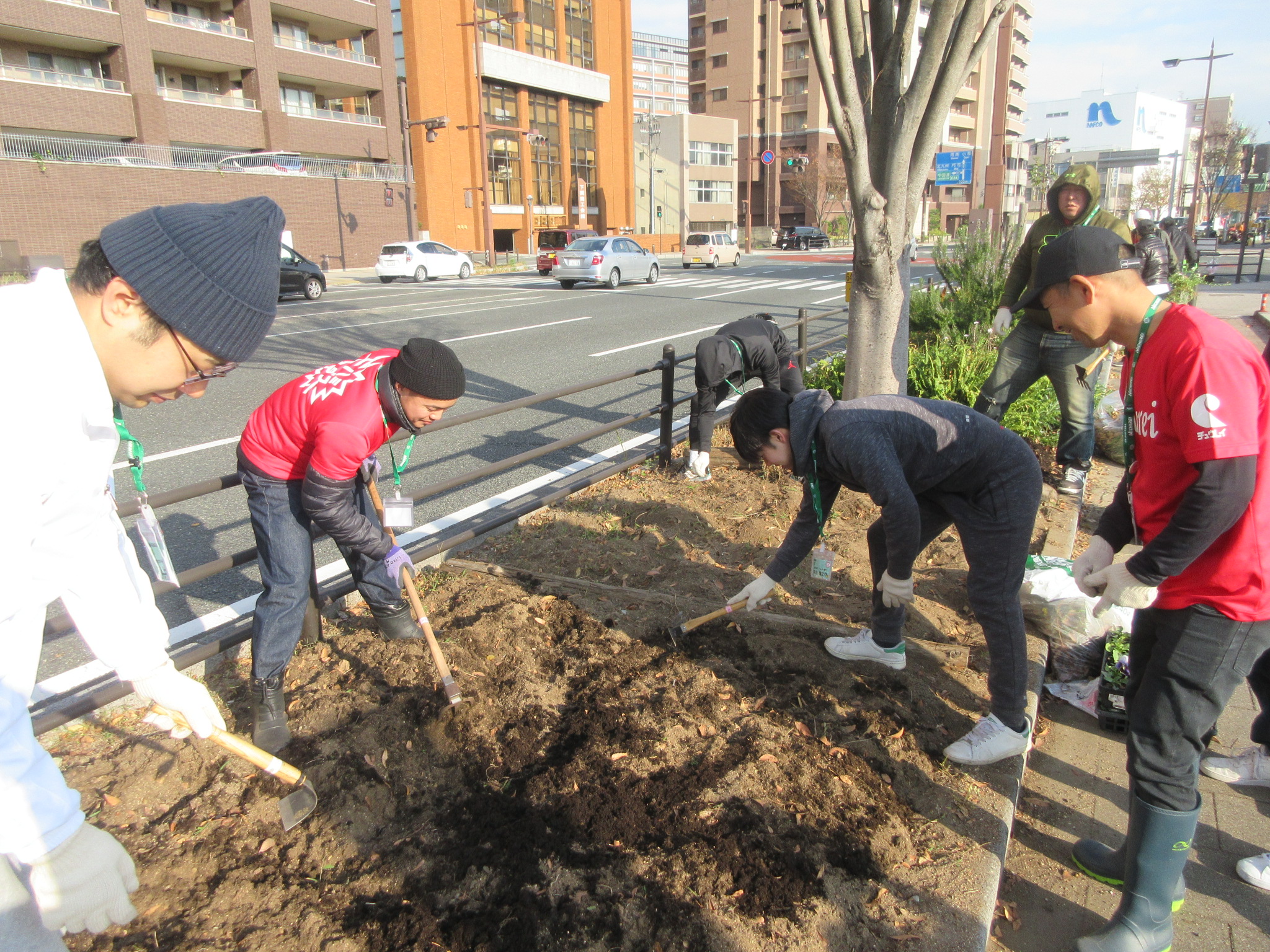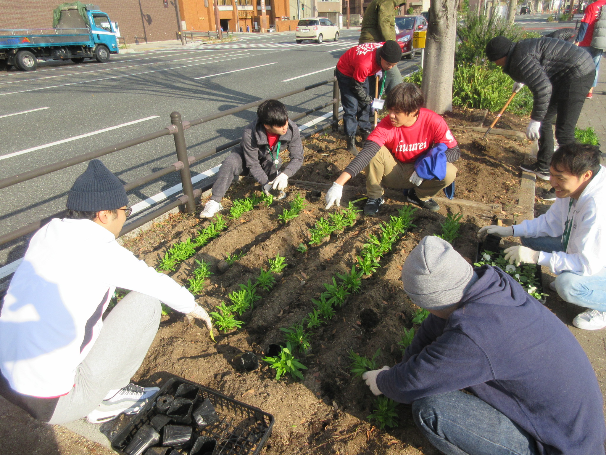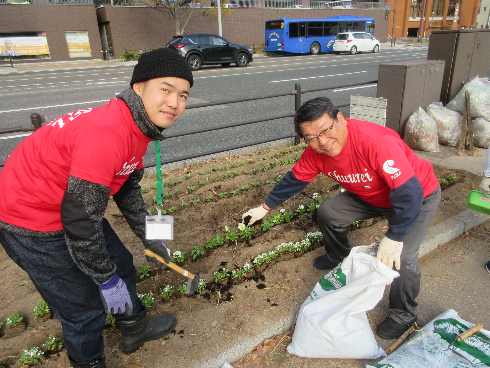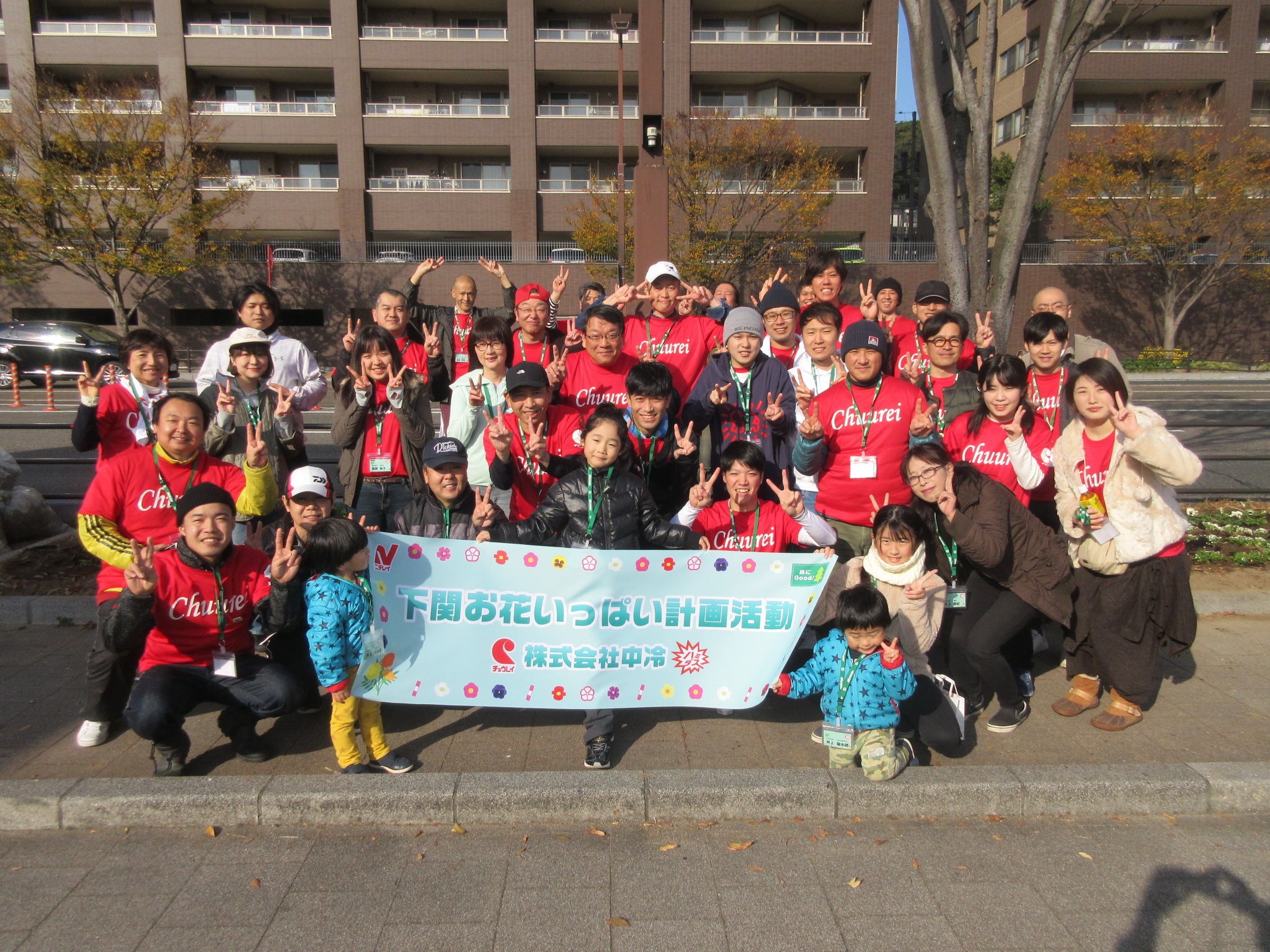 ニチレイフーズのグループ会社で、下関にある中冷も毎年参加して花壇のお世話をしています。