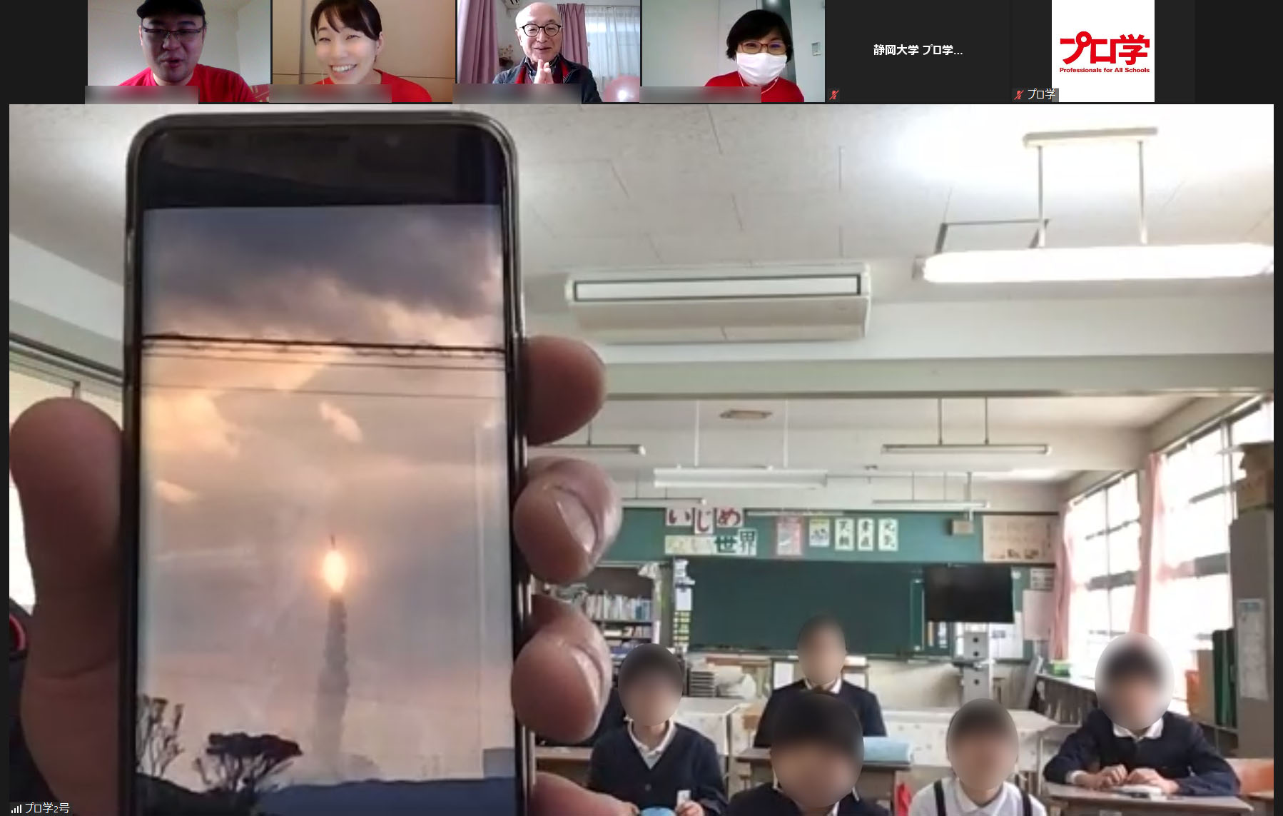 スマホを使って、種子島の景色や、小学校の窓から見ることができる「ロケット発射場」を紹介してくださいました。