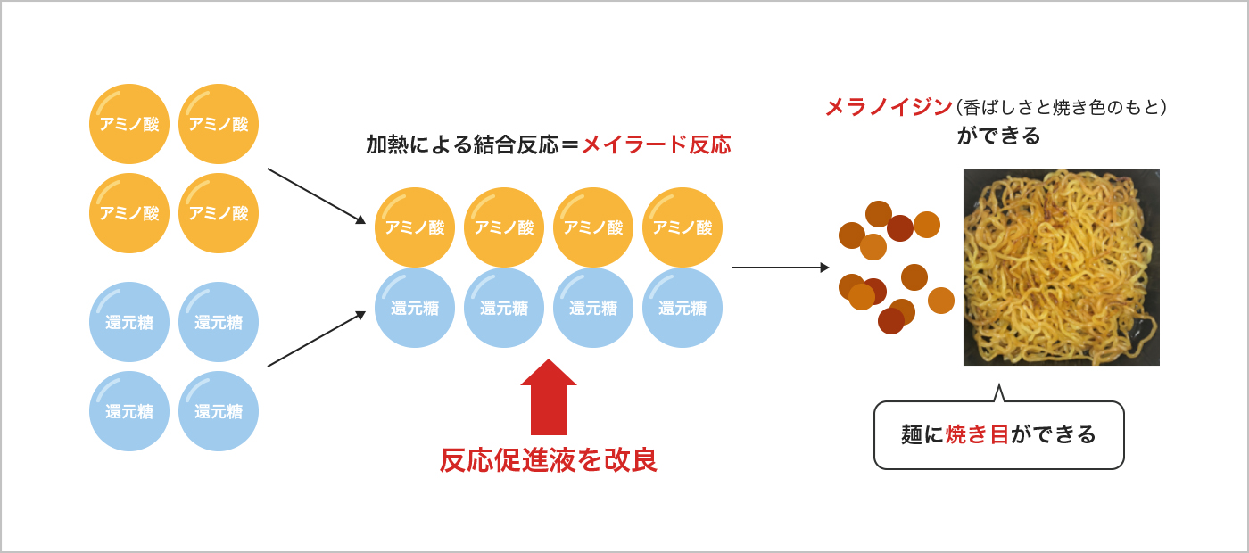 さらに、焼き面の香ばしさやこんがり感が感じられるように、焼き色や香ばしさの素になるメイラード反応も強化を図りました。