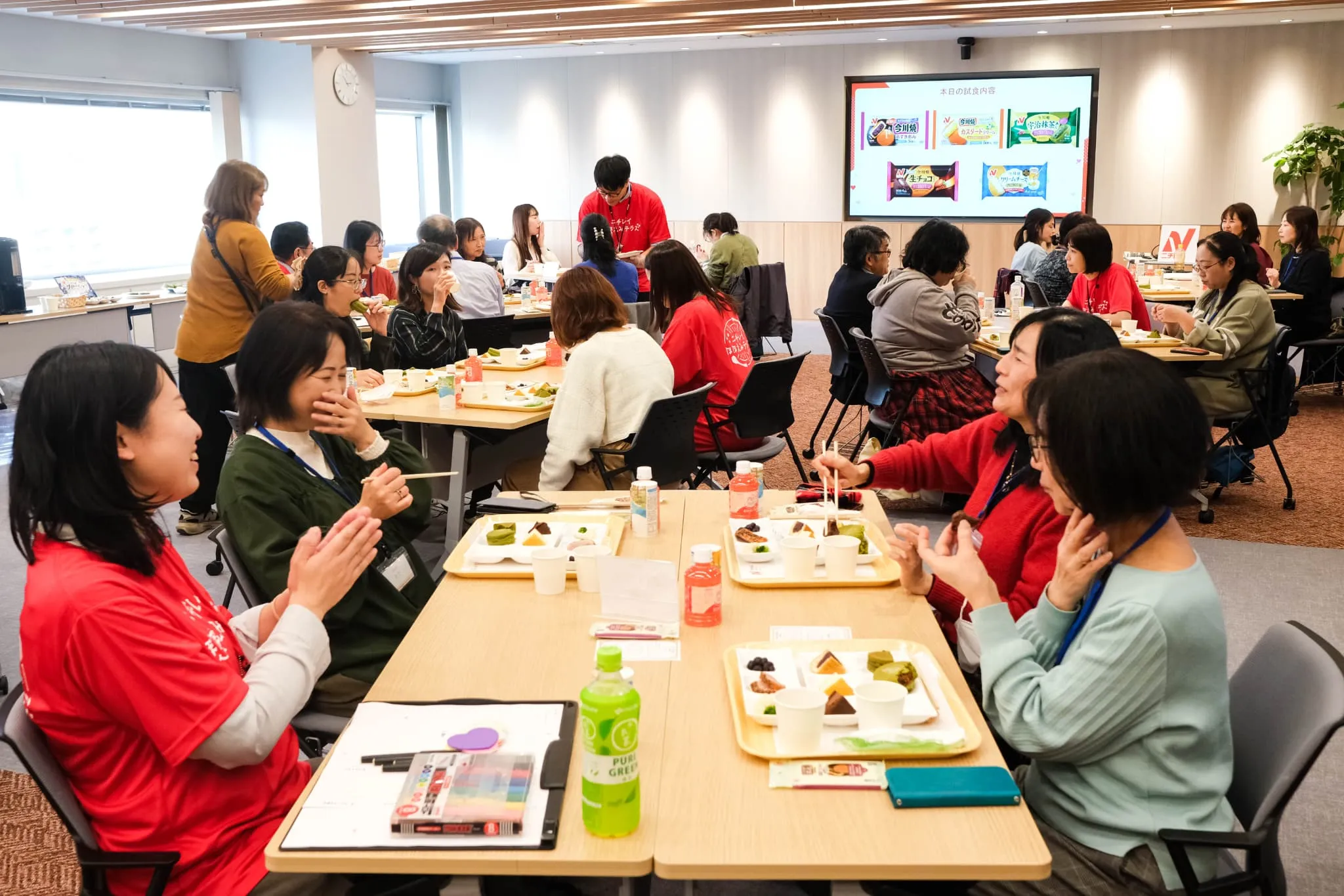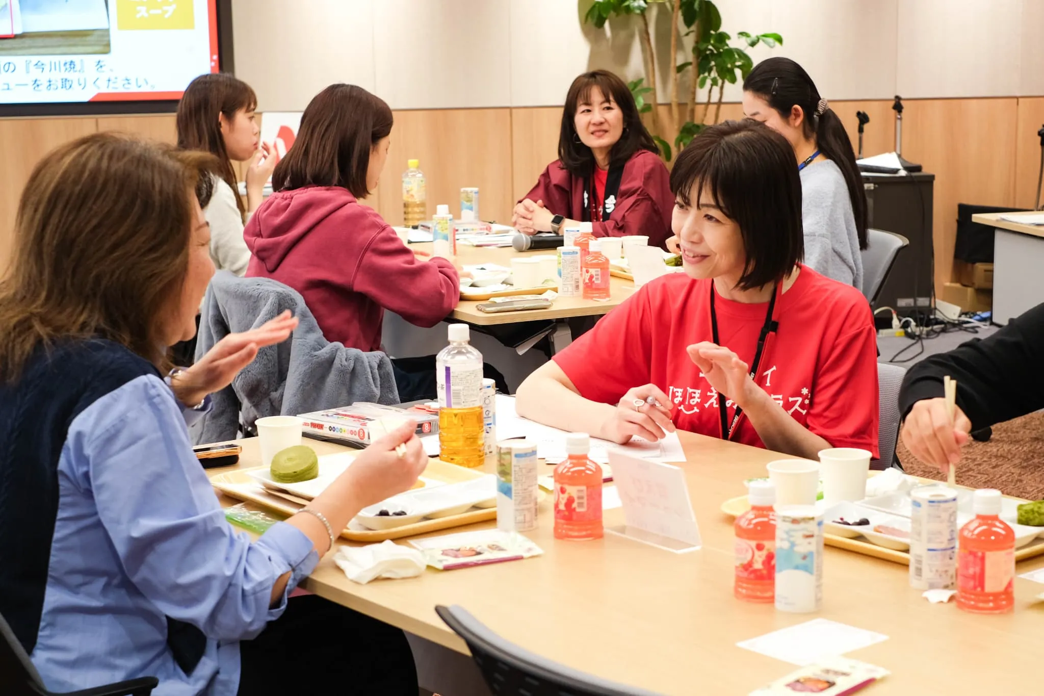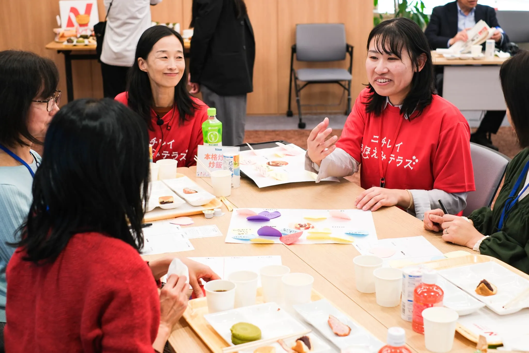 「好きなところ」「おすすめの食べ方」「食べるシーン」「商品へのリクエスト」など、8つの質問をもとにグループトークを実施。最後には、どんな話で盛り上がったのかを、各グループごとに全体発表していただきました。