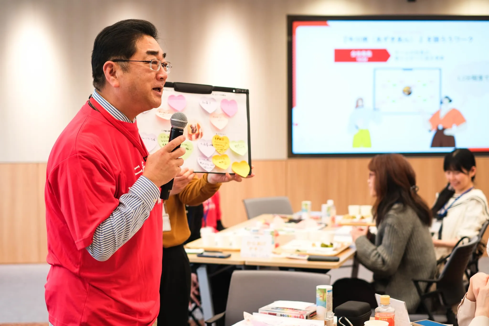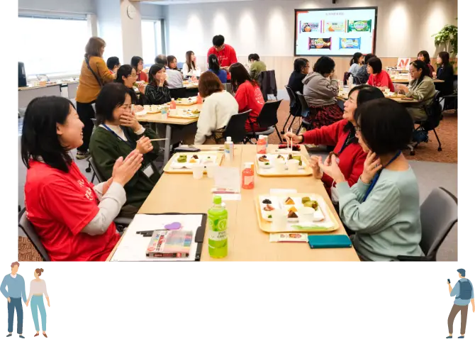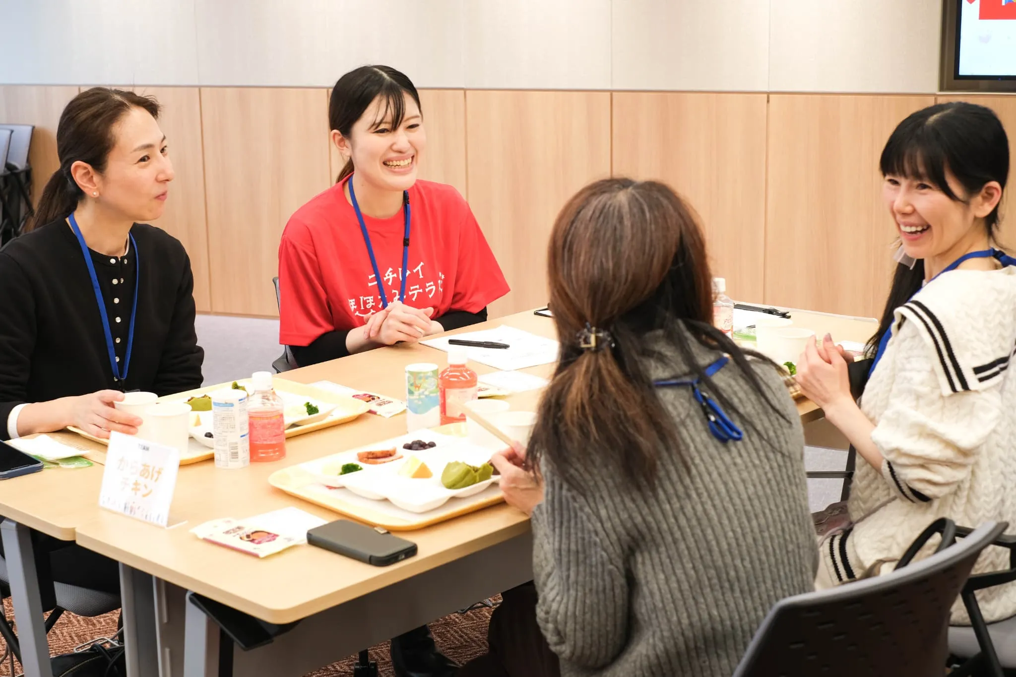 「好きなところ」「おすすめの食べ方」「食べるシーン」「商品へのリクエスト」など、8つの質問をもとにグループトークを実施。最後には、どんな話で盛り上がったのかを、各グループごとに全体発表していただきました。