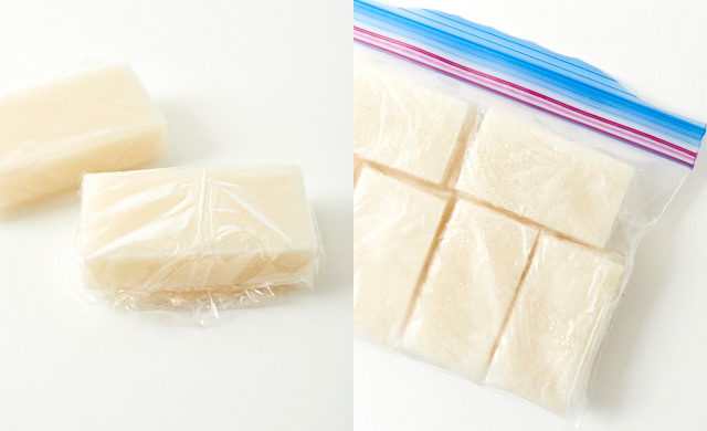 個包装されていない餅や、手作りの餅は、約1切れずつラップに包み、冷凍用保存袋に入れて冷凍。