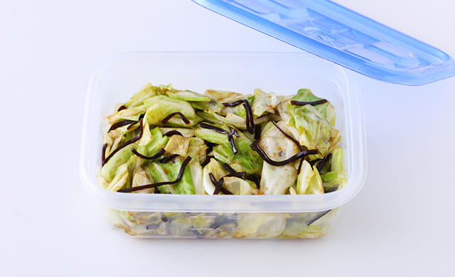 やみつきキャベツは作り置きが可能。多めに作って冷蔵庫でストックしておけば、忙しいときに重宝します!