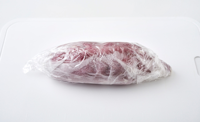 ラップが蒸気を閉じ込めて温度を保つので、隙間ができないようにくるむ。