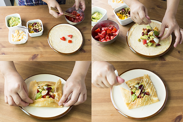 クレープは好きなものを好きなように包んで食べられるので、具材を選びながら作れるのが大きな魅力。具材を生地で巻いたり包むだけなので、お子さまも一緒に作れるのが嬉しいですね。