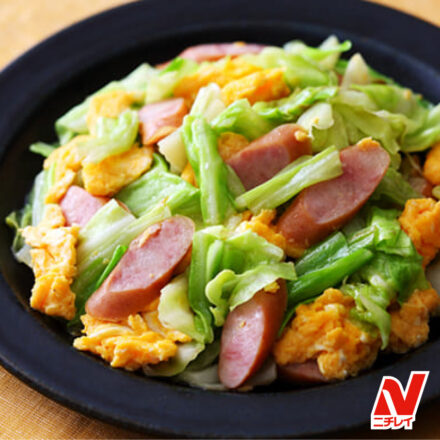 【キャベツとウィンナーの卵炒めレシピ】綺麗な彩りでお弁当にも◎