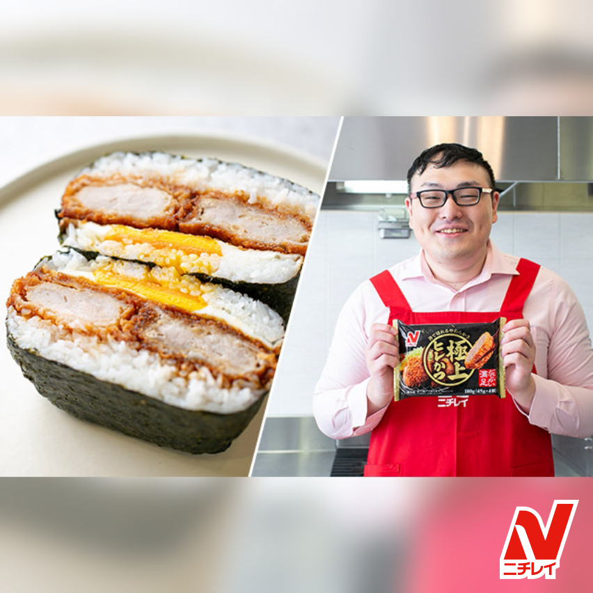 【ジョーさん。の冷食極ウマレシピ】『極上ヒレかつ』で月見おにぎらず!