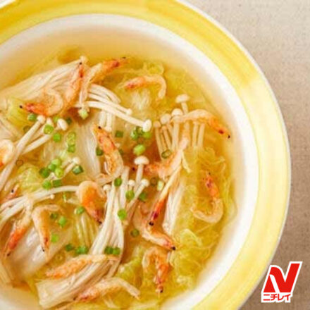 【白菜ときのこの和風スープレシピ】桜えびの風味がアクセントに
