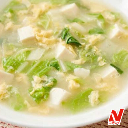 【白菜と卵のスープレシピ】豆腐を加えてヘルシーにカサ増し!