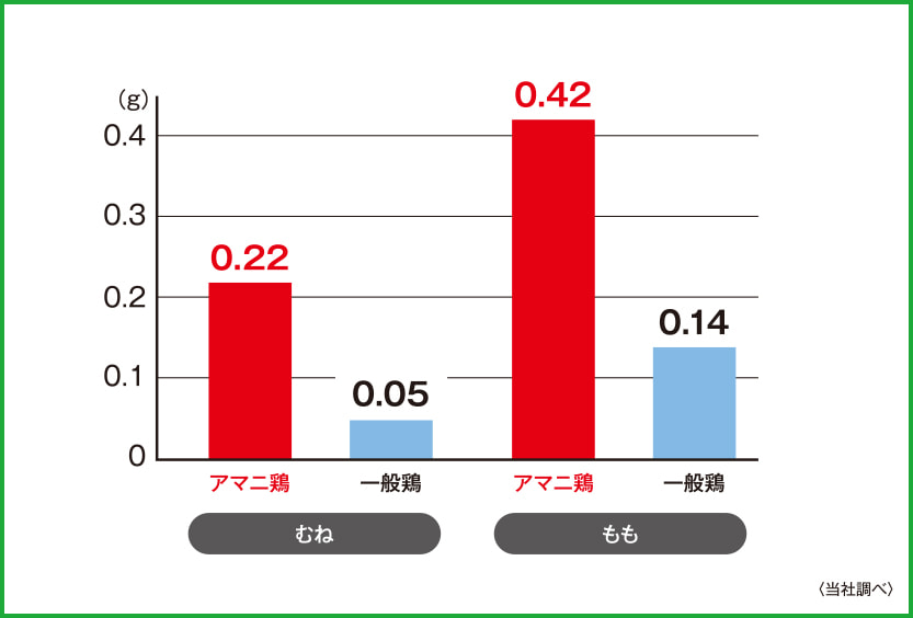 鶏肉(むね・もも)100gに含まれるオメガ3系脂肪酸量の比較(国産鶏)