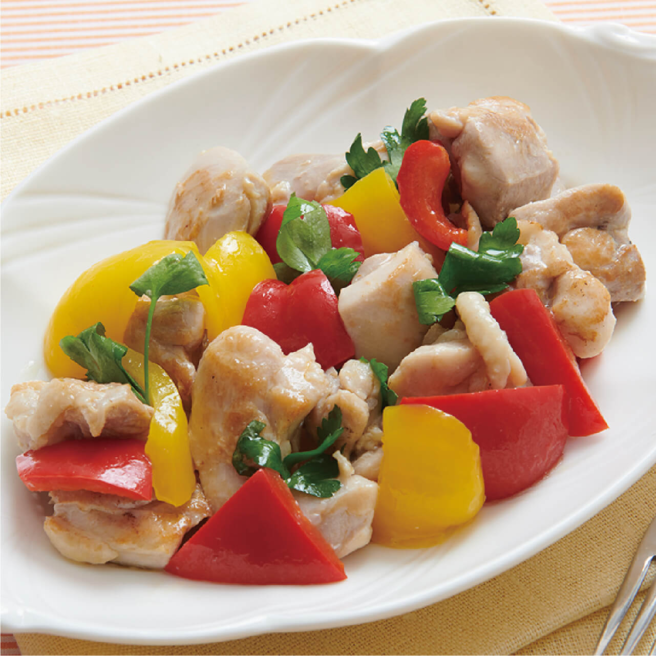 ● 鶏肉に塩、こしょうをし、4cm角に切る。