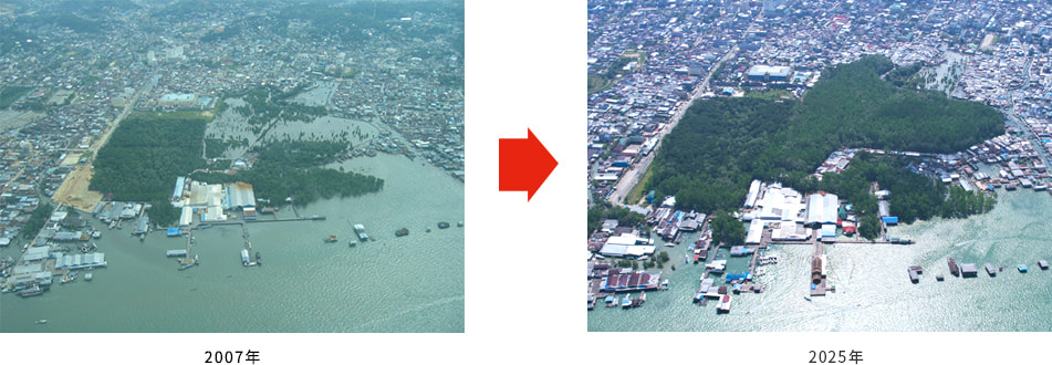 養殖池として使用されなくなった土地などを植樹エリアに設定し、緑豊かなマングローブの森の再生に向け引き続き取り組んでまいります。