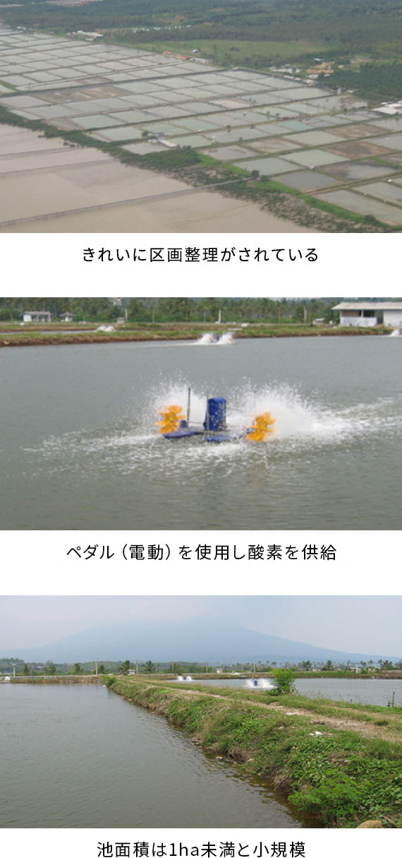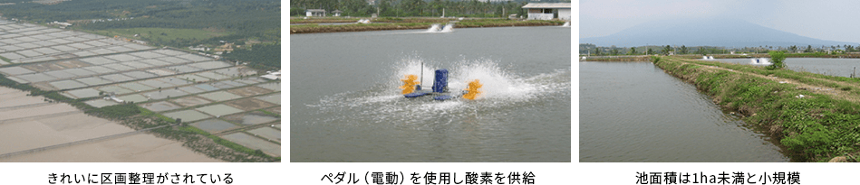 【1ha前後の人工の池で、電気と餌を使い効率良く養殖する】