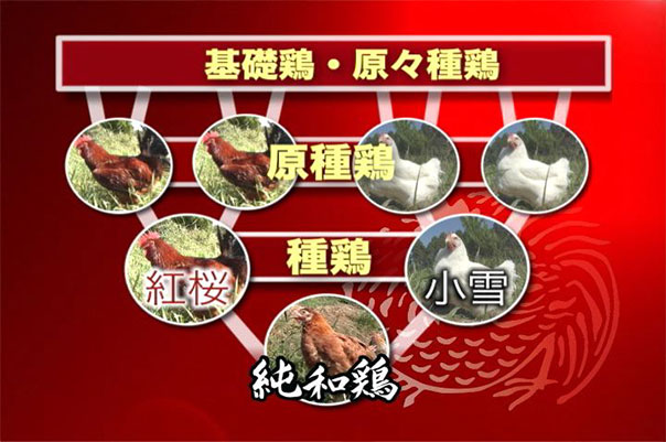 こうした背景の中、ニチレイフレッシュファームが養鶏する純国産の鶏が『純和鶏®』です。日本で唯一の肉用鶏ブリーダー(育種改良機関)である独立行政法人家畜改良センター兵庫牧場で育成する純国産鶏種「小雪」と「紅桜」を基礎鶏にして、原種の段階からすべて日本国内で育種改良された、まさに日本の鶏です。